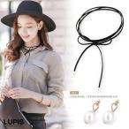 チョーカー 黒 ブラック パール ネックレス ロング スエード シンプル かわいい アウトレット