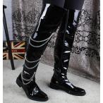 メンズブーツ レザー パンク風 長靴 長ブーツ ポインテッドトゥ マーティンブーツ 乗馬靴 舞台ブーツ cos
